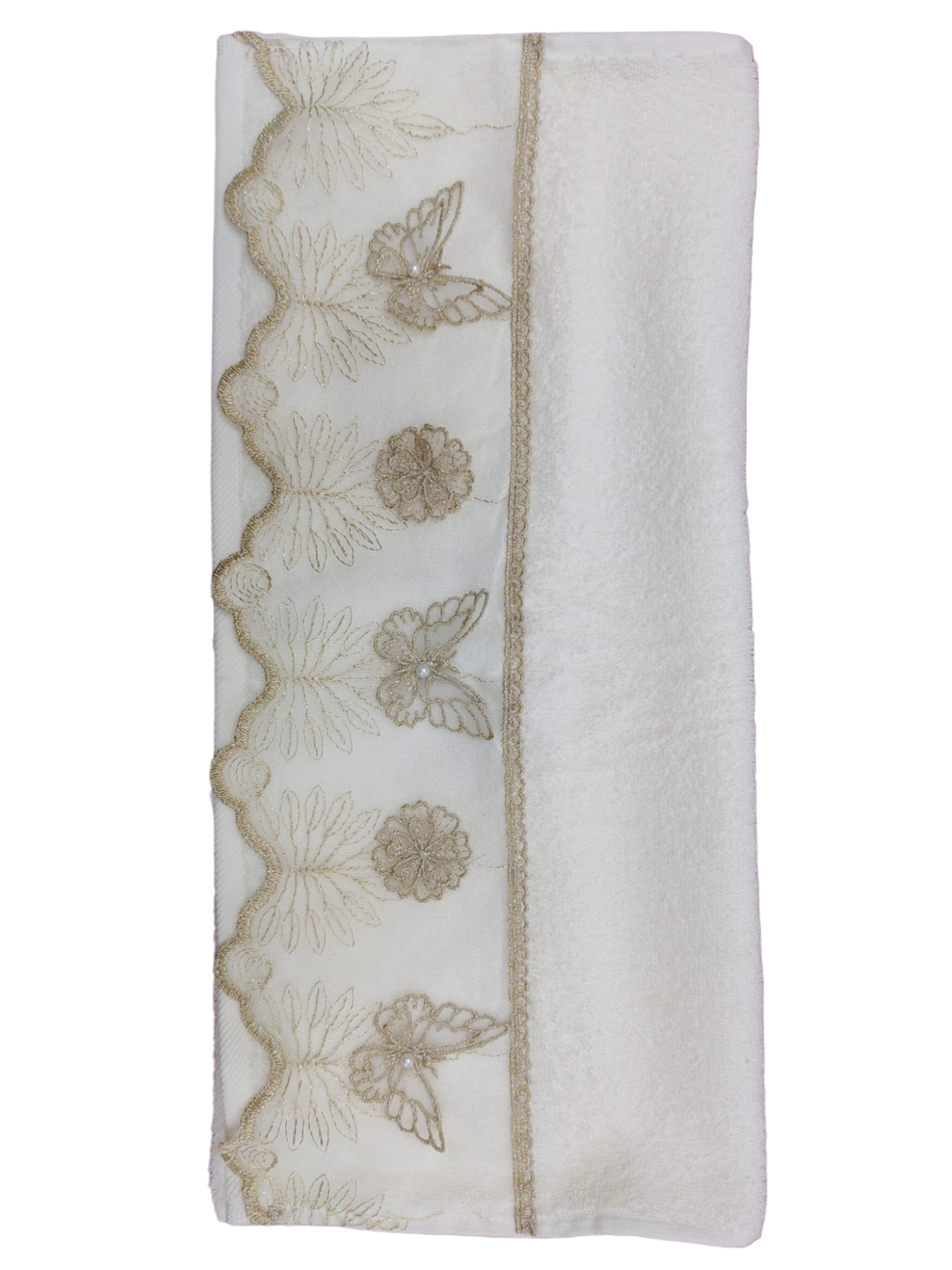 Zarafet ve kaliteyi buluşturan Beyza Güpürlü El Yüz Havlusu, şimdi sizinle. İnce güpür detayları ve sizi şımartacak dokusuyla, günlük yaşamınıza lüks bir hava katın!