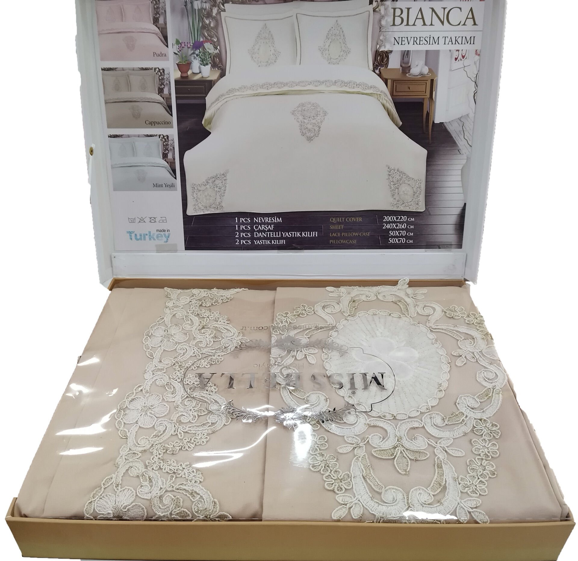 MissBella İpek Nevresim Çift kişilik Dantelli Nevresim Takımı %100 Pamuk Cappuccino