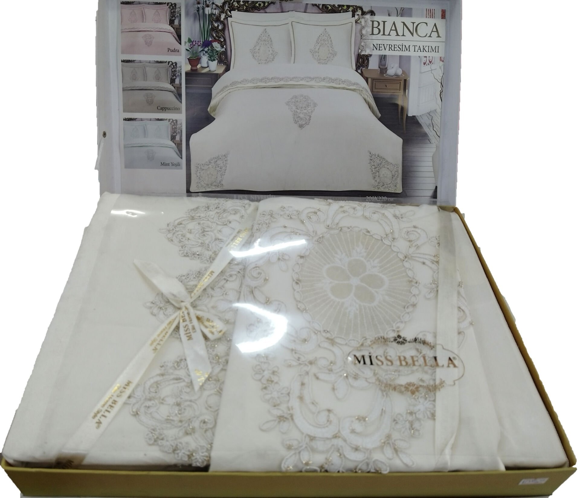 MissBella Bianca Nevresim Çift kişilik Dantelli Nevresim Takımı %100 Pamuk Krem